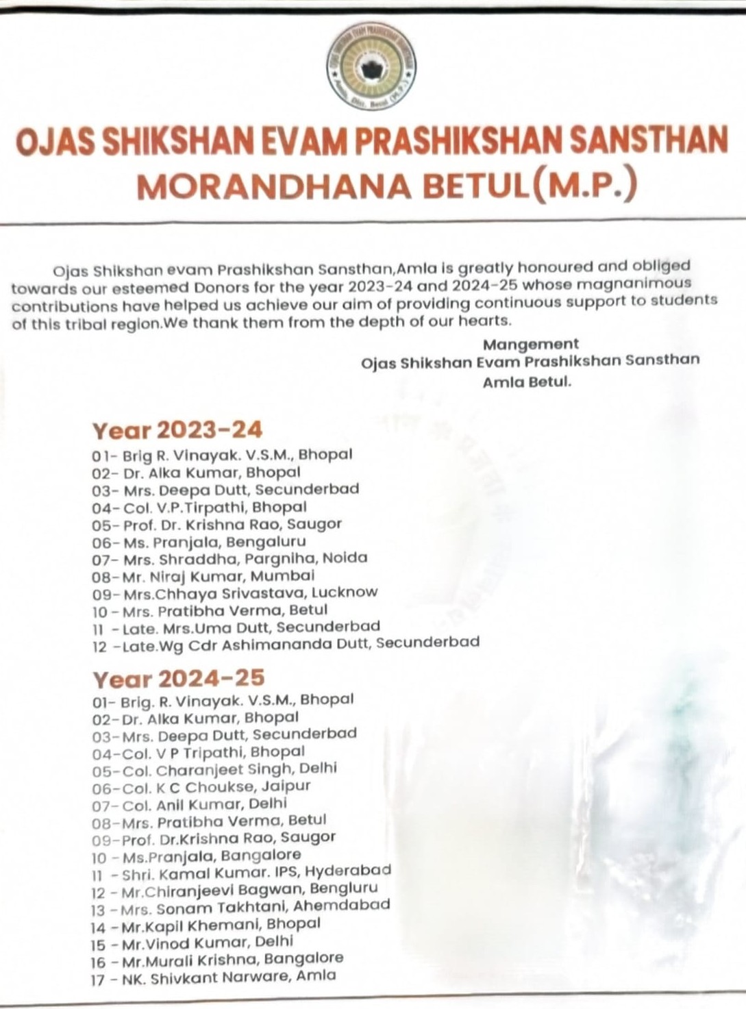 DONAR LIST YOR YEAR 2023-24 AND 2024-25